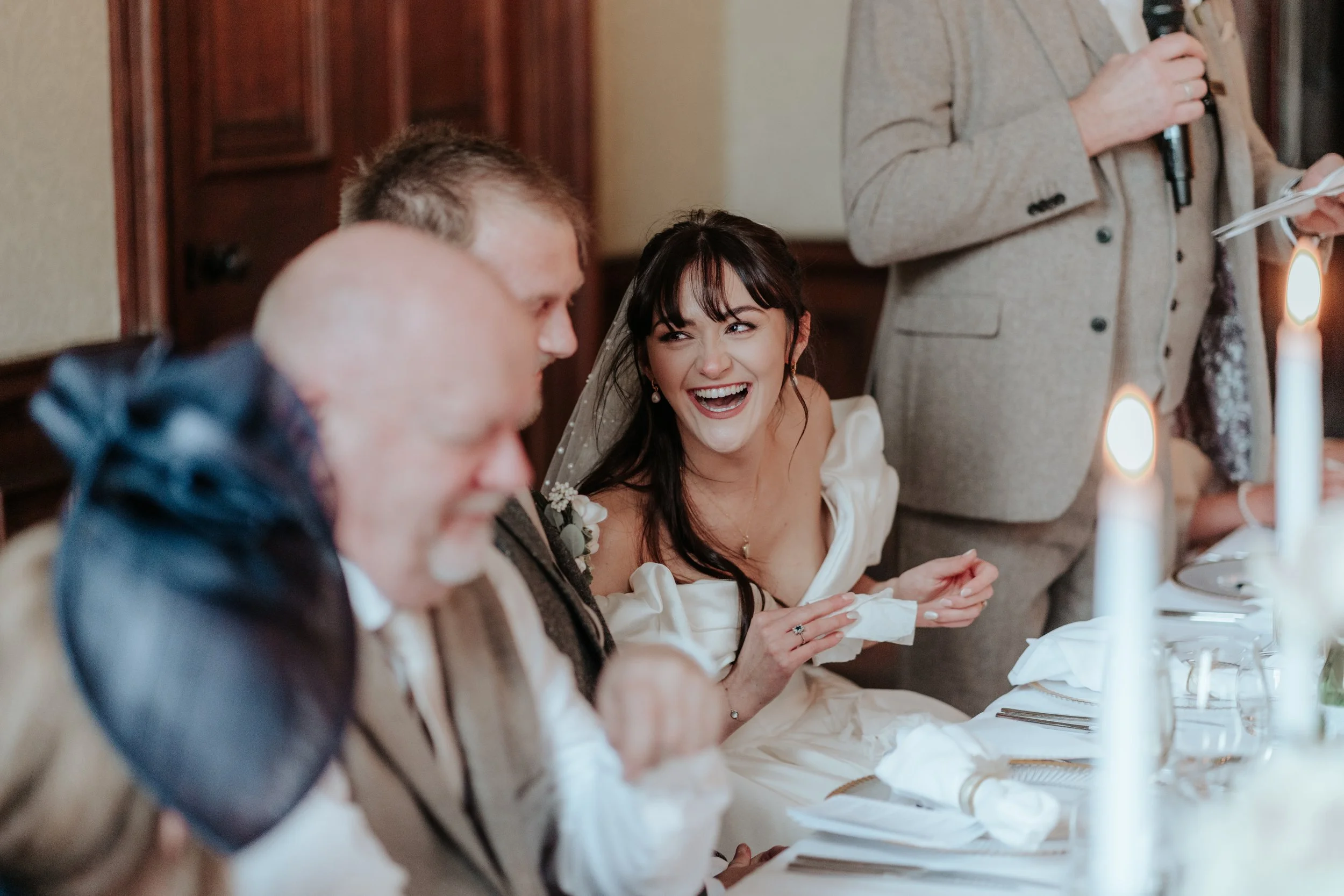 Jonnie and Rebecca made such a grand entrance to the wedding breakfast — even dancing their way in! The energy was electric, and everyone cheered them on. You could feel how much they put their personal touch into every detail, especially with heartfelt thank-yous for each guest. It was a beautiful way to make everyone feel included and valued.